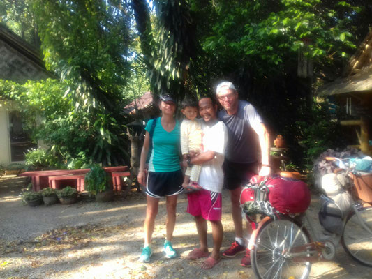 Abends lernen wir Adrian aus Singapur kennen, der mit dem Longboard um die Welt fährt. Ausserdem hören wir Geschichten von Leuten die mit den ungewöhnlichsten Fortbewegungsmitteln reisen wie zum Beispiel ein Pole, der mit dem Esel aus Europa hier nach Thailand gereist ist. Oder ein Franzose, der innerhalb von sieben Jahren die ganze Strecke zu Fuß zurück gelegt hat. Wir gehören also zu den Langweilern.