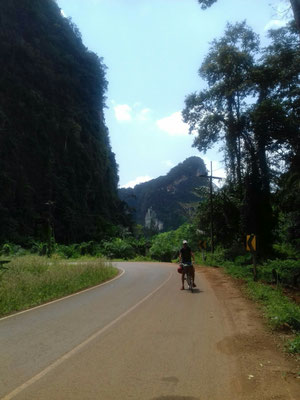 Die Landschaft entlohnt für vieles. Wir laufen entlang von Karstbergen die links und rechts von der Strecke aufragen und ein ganz anderes Bild bieten als das eher flache Land in Malaysia. Immer wieder treffen wir auf warmherzige Menschen die uns Getränke reichen. An einem Tag haben wir sogar Probleme alle geschenkten Getränke auf Henriette zu verstauen.