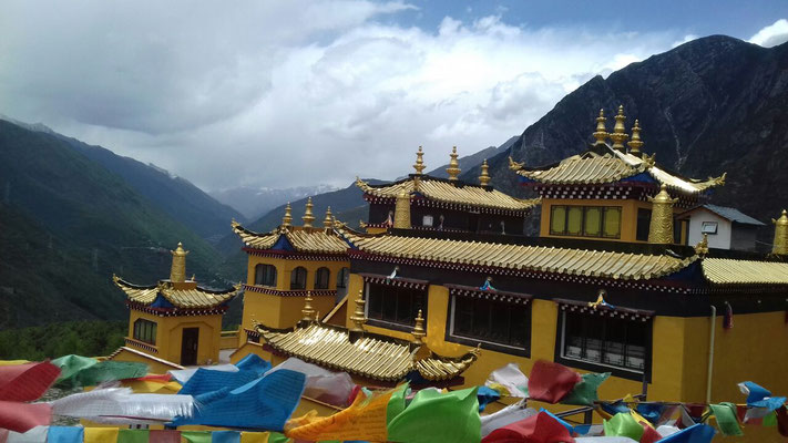 Mit dem Bus geht es nach Kangding im tibetischen Teil Sichuans. Bei unserer Ankunft regnet es in Strömen und das hält zwei weitere Tage an, so dass wir unsere geplante Trekking Tour zum Mount Gongga leider nicht machen können. Die verbleibenden drei Tage machen wir Tagestouren in die umliegenden Berge und besuchen verschiedene Klöster. Hoch oben stapfen wir auch durch den ersten Schnee auf unserer Tour.